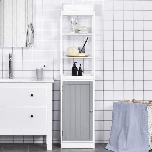 Bathroom Tall Storage Cabinet Organizer Tower with Door and Shelves in White