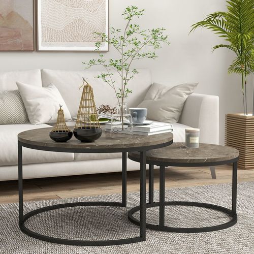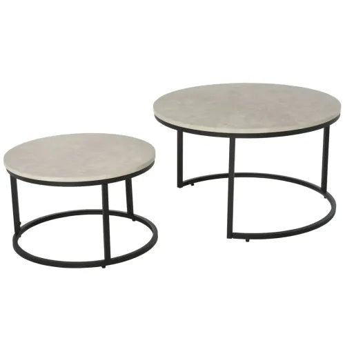 Stacking Coffee Table Set Steel Frame Marble - Effect Top - 2 Pcs