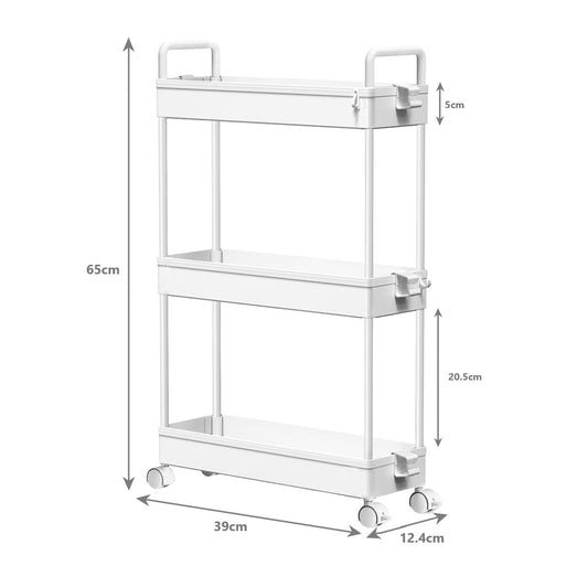3-Tier Ultra Slim Storage Trolley with Cups - White