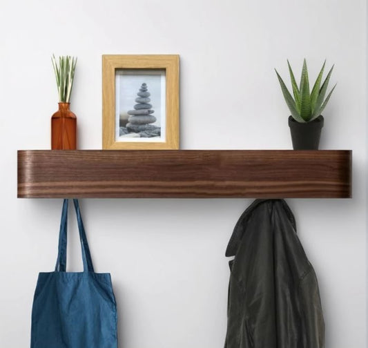 Wall-Mounted Coat Rack with 5 Hidden Hooks - Walnut