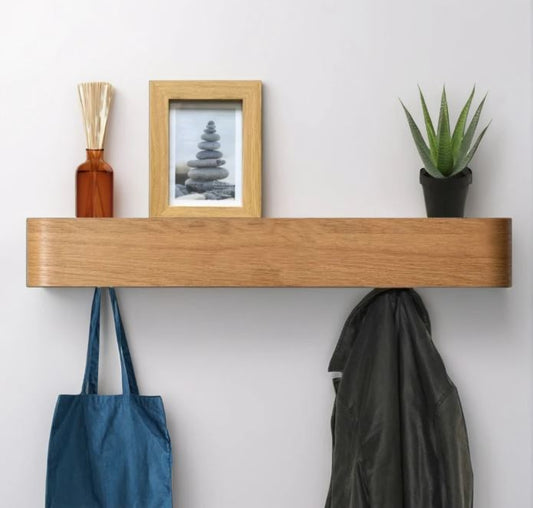 Wall-Mounted Coat Rack with 8 Hidden Hooks - Oak