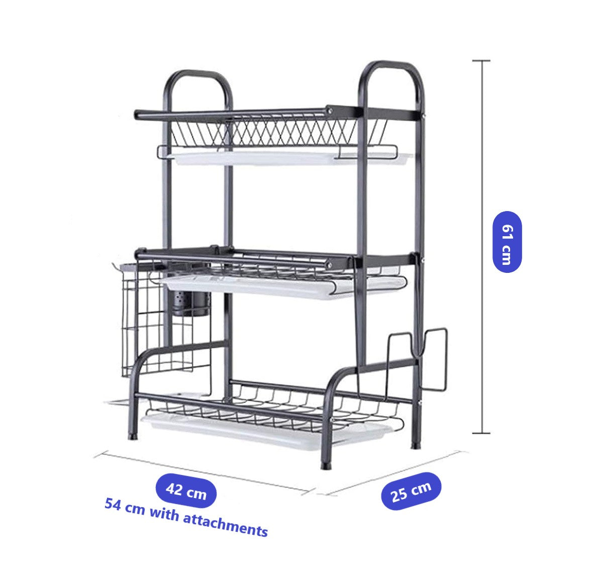 Easy Assembly: The minimalist design ensures this kitchen drying rack is simple to assemble with clear instructions. Dimensions: 42cm (L) 54cm (with attachments) x 25cm (W) x 61cm (H).
