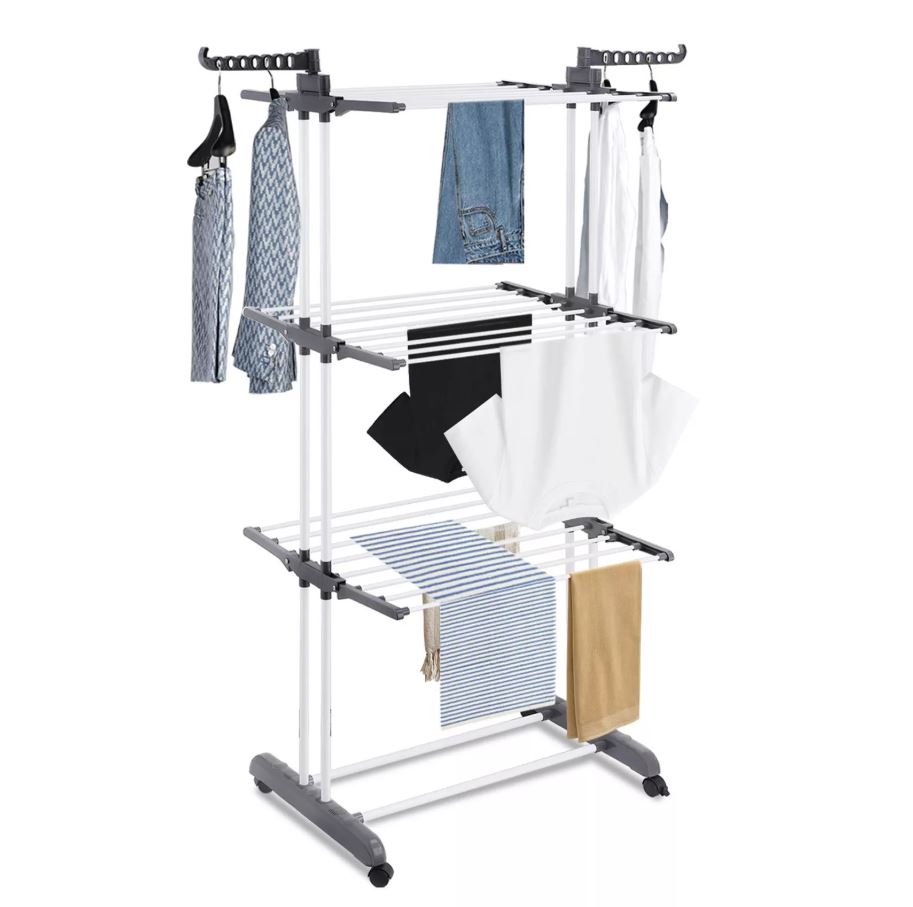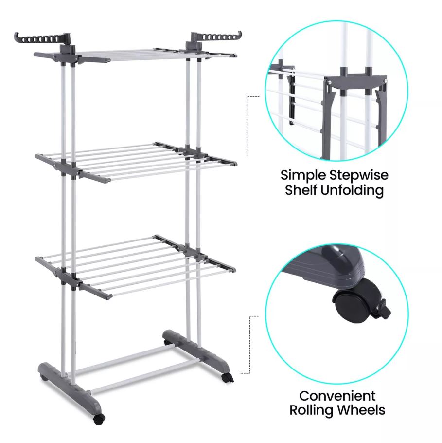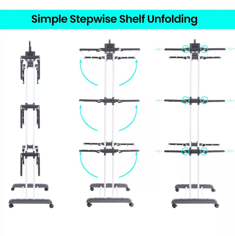 Stable Design: Crafted from stainless steel and durable plastic, this clothes airer indoor features bold double columns on each side for added stability, making it more reliable than standard racks.