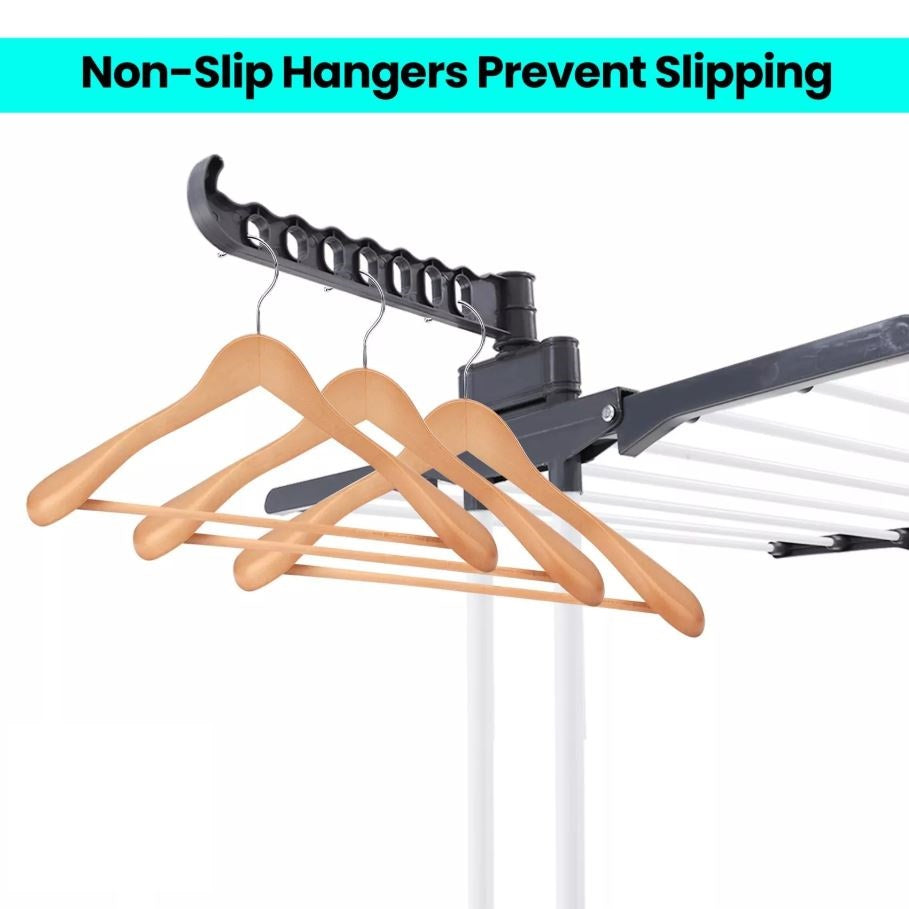 Clothes Drying Rack: Featuring a 4-tier design and two wing hooks, this rack offers ample space for drying towels, socks, clothes, shoes, quilts, and more—perfect for the whole family's laundry.