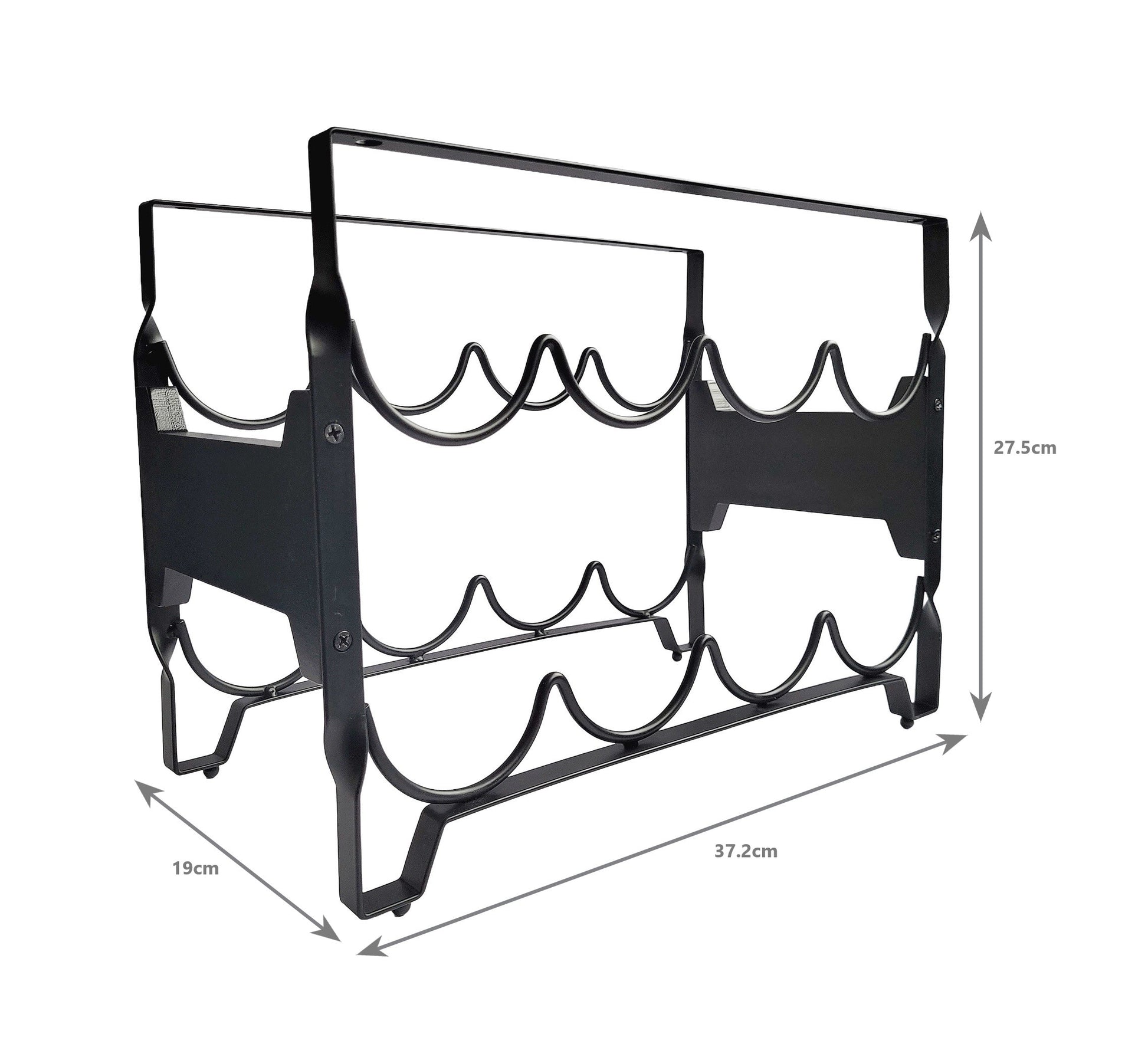 - Size: Our bottle stand is 37.2cm (L) x 19cm (W) x 27.5cm (H)
