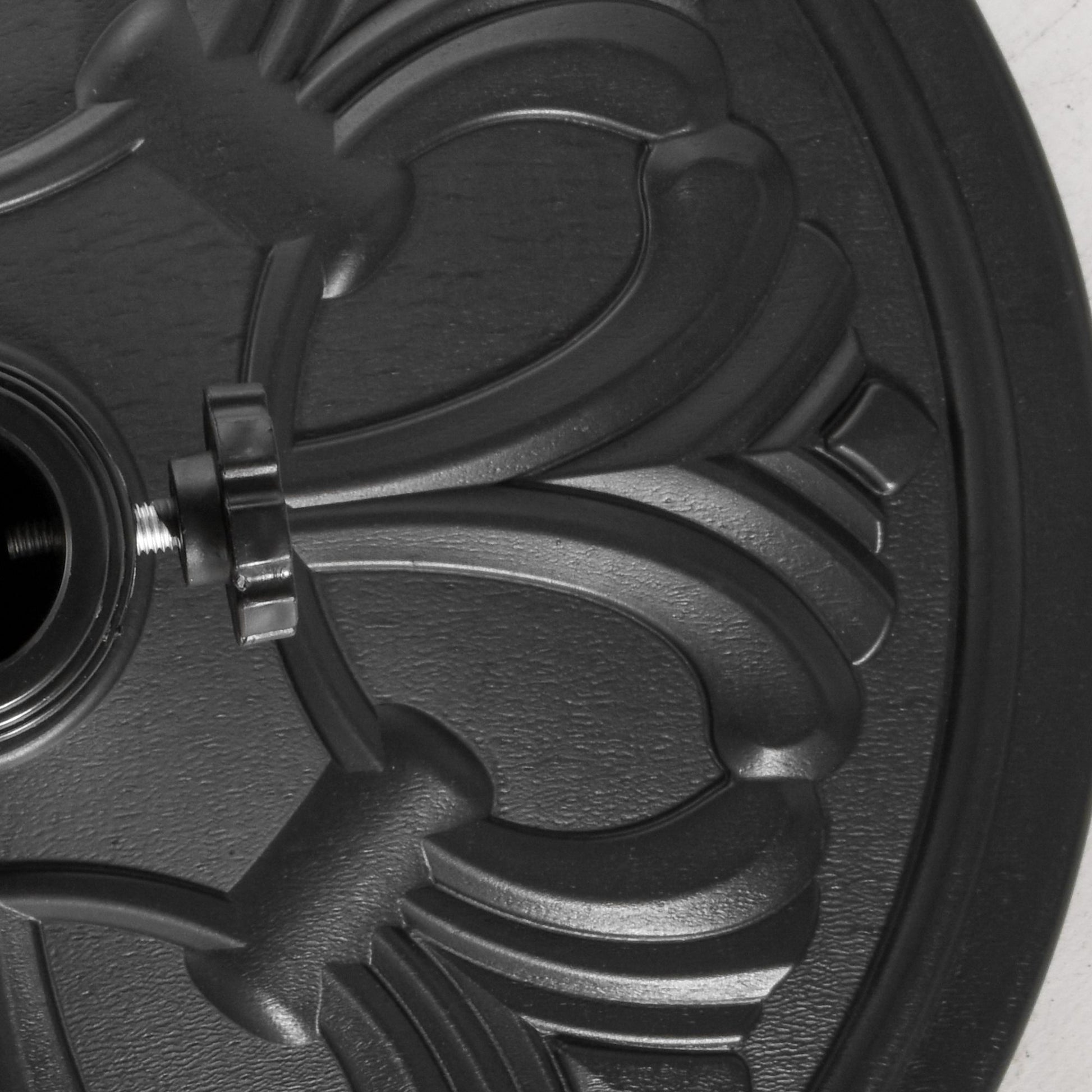 Ensure your parasol is kept firmly in place in all weather conditions with this elegant flower pattern umbrella base from Outsunny. Made from a combination of HDPE cement and metal and crafted into a bronze effect rattan finish it weighs 13kg in total meaning it can withstand even windy weather conditions. It is finished with a tightening screw and fits poles up to 48mm in diameter allowing it to hold the parasol securely in place. Strong beautiful and durable it has been built to let you enjoy the sun with plenty of shade for years to come.