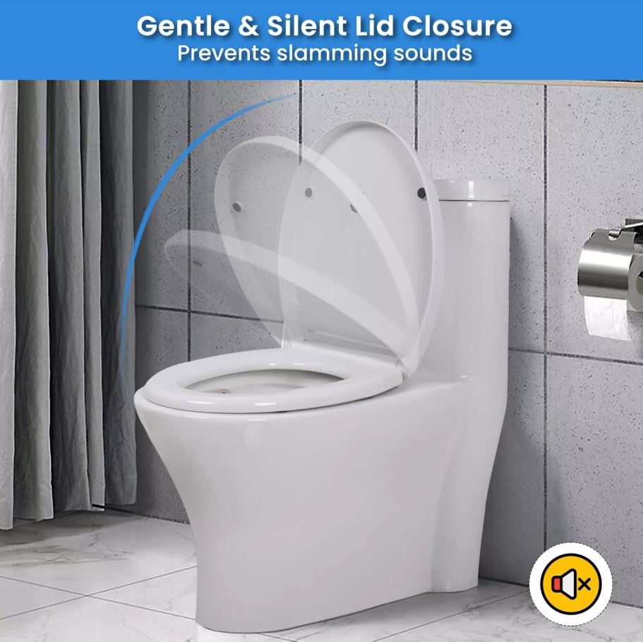 Our oval toilet seat offers a soft-close mechanism, ensuring a quiet, gentle closure and eliminating slamming noises for a peaceful bathroom experience, especially at night. The advanced design prevents disruptions, keeping your environment calm and tranquil.