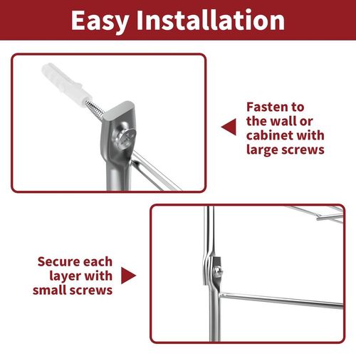 The herb & spice rack has a chrome finish, will fit in nicely with the vast majority of kitchen decoration schemes. Unlike wooden spice racks, this spice rack organiser is easy to wipe clean. Includes a screw and plug fitting kit